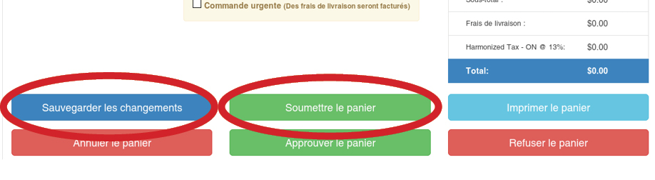 Si vous avez effectué des changements sur cette page, utilisez le bouton Sauvegarder pour enregistrer les modifications sans soumettre votre panier.