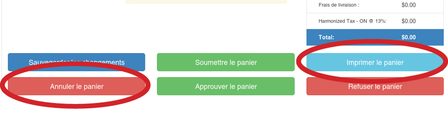 Si vous avez effectué des changements sur cette page, utilisez le bouton Sauvegarder pour enregistrer les modifications sans soumettre votre panier.