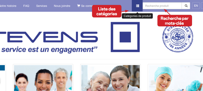 Il existe deux façons de trouver un produit : par mots-clés ou par catégorie.